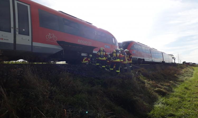 Durch starke Wärmeentwicklung an den Bremsen eines Regionalzuges kam es zu einer starken Rauchentwicklung. Der Lokführer stoppte den Zug im Gemeindegebiet Woringen in der Nähe eines Bahnübergangs. Es wurden mehrere Feuerwehren alarmiert. Diese kühlten die Bremsen und stellten den Brandschutz sicher. Mit dem Rettungsdienst wurden die Fahrgäste betreut, die zeitnah mit einem Ersatzbus weiter Transportiert wurden.